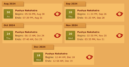 But what if you want to invest every month and don’t want to wait until Dhanteras then you’ve yourself Pushya Nakshatra every month & it’s mahurat timings are as follows.